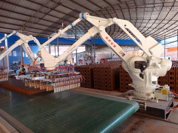 渤海機(jī)械公司的工業(yè)智能機(jī)器人自動切碼翻系統(tǒng)具有伺服電機(jī)驅(qū)動,自動化程度高,碼坯工藝簡潔,運(yùn)行平穩(wěn)可靠、能耗低,節(jié)省空間,現(xiàn)場適應(yīng)性強(qiáng),可抓多種磚型。